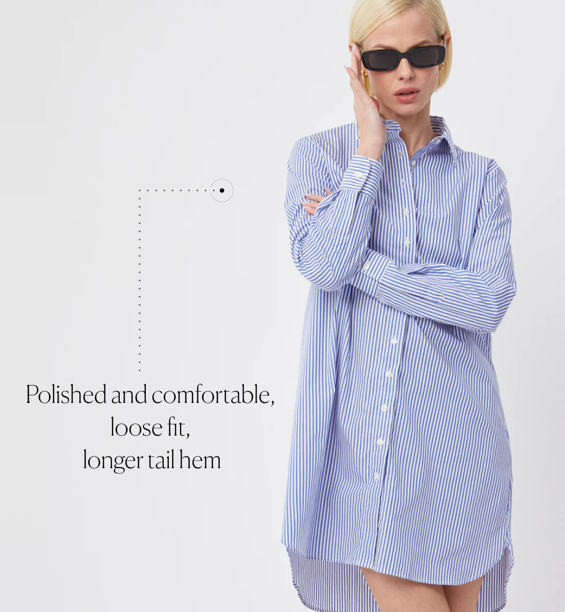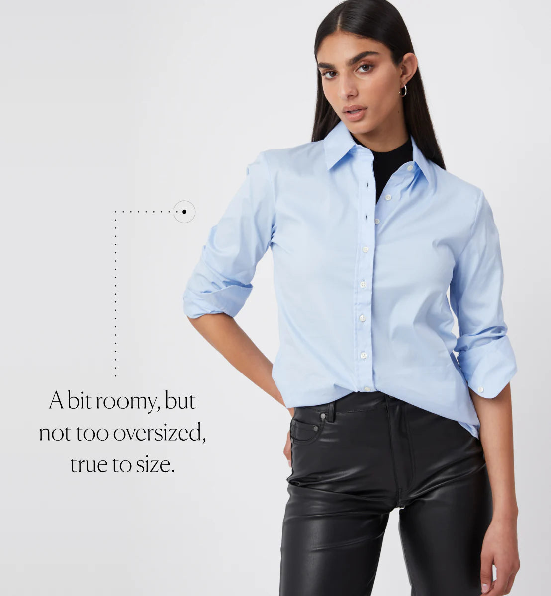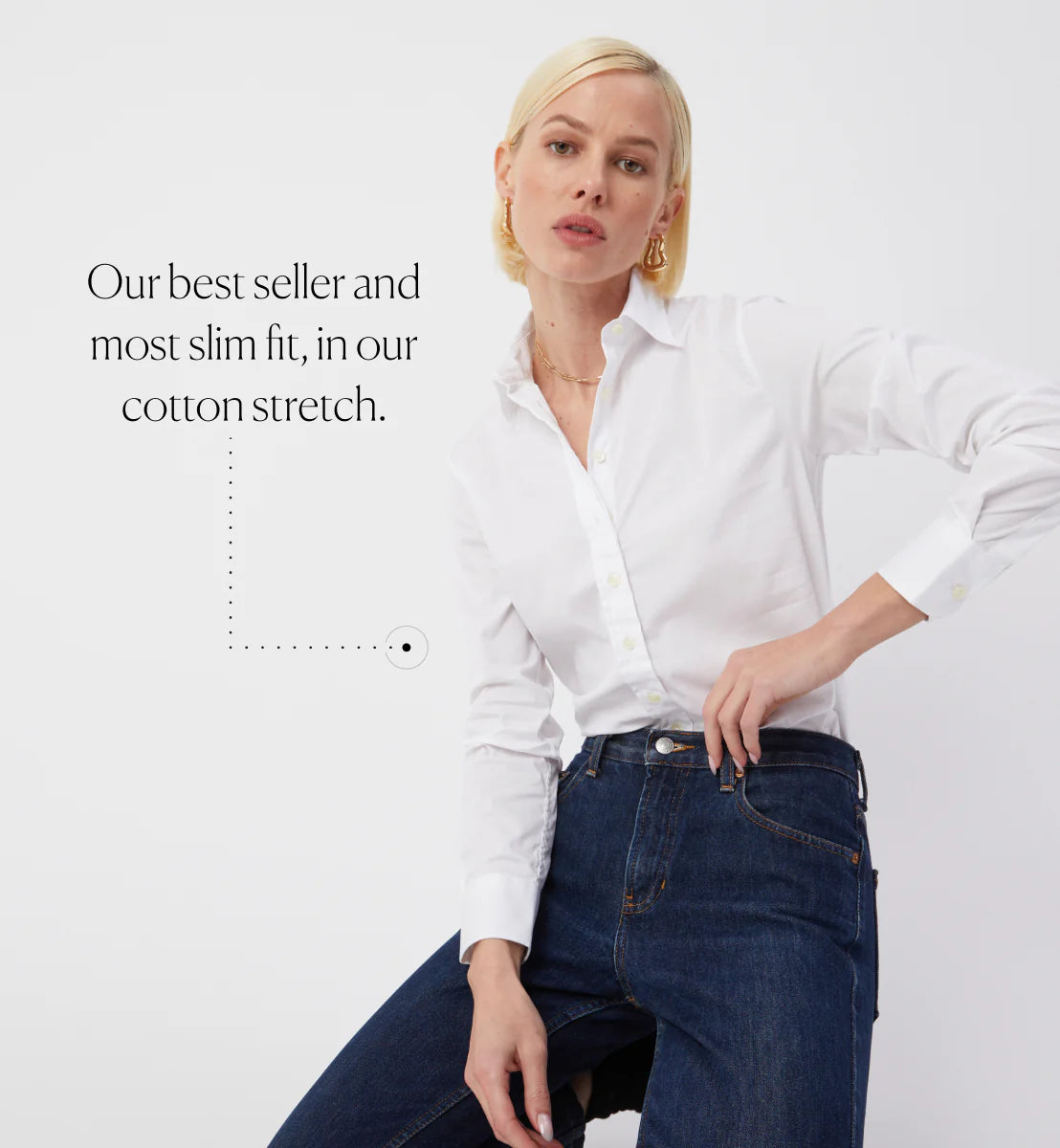 Our perfect fit cotton stretch button down. We designed our best-selling Icon Shirt to be fitted throughout, giving you a body-hugging shape yet eliminating blouse gape completely. Our cotton stretch is sourced from a family-run mill in Spain and produced in our factory in Portugal by a local team of artisans.