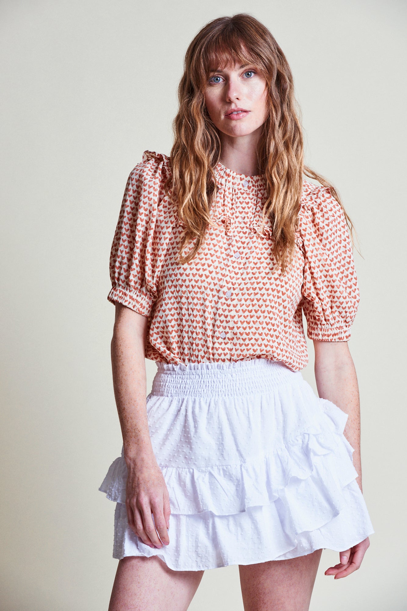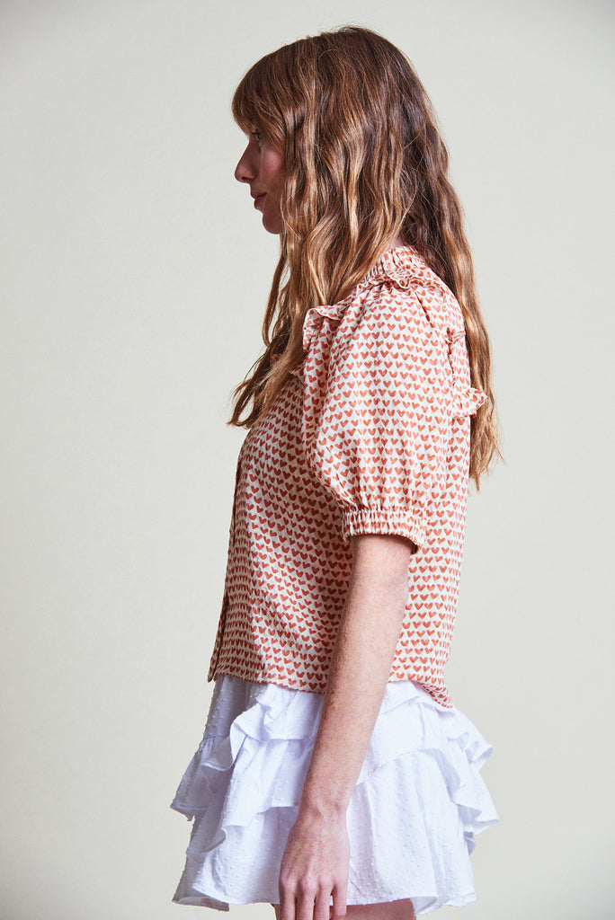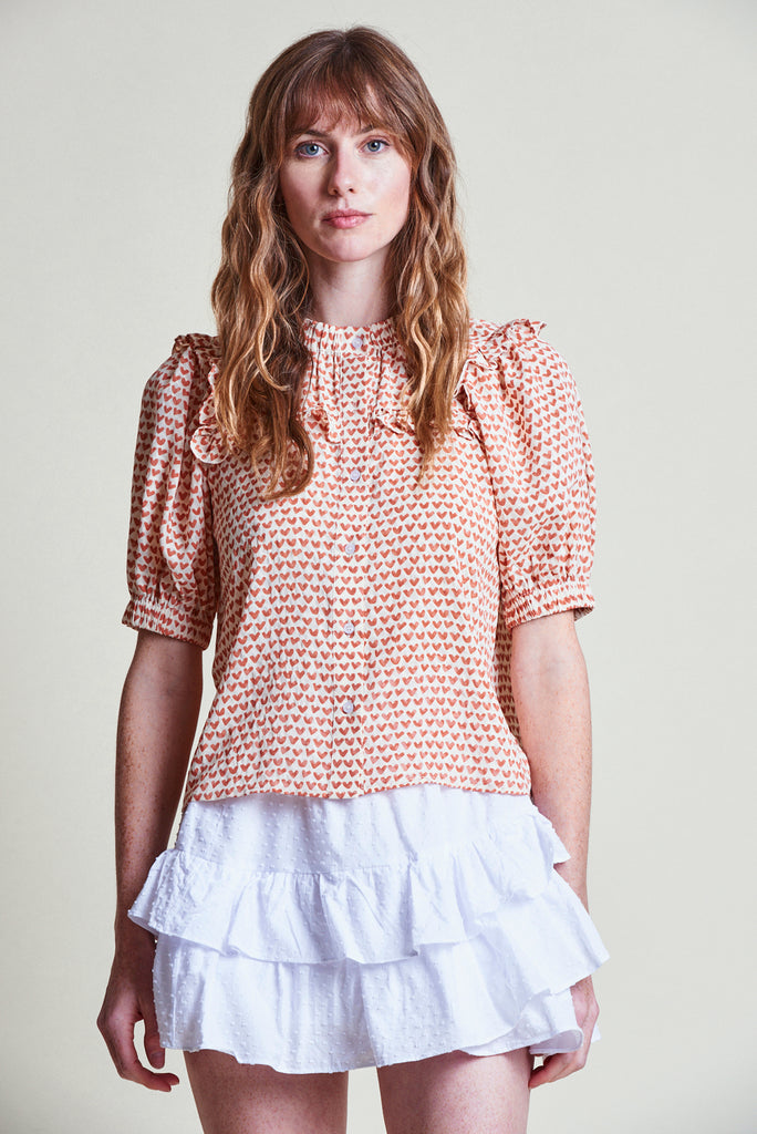 Meet The Courtney, our best-selling spring silhouette. Delicate ruffles and elastic details at the neck and cuffs, with a slightly elongated short sleeve, make it perfect for layering.