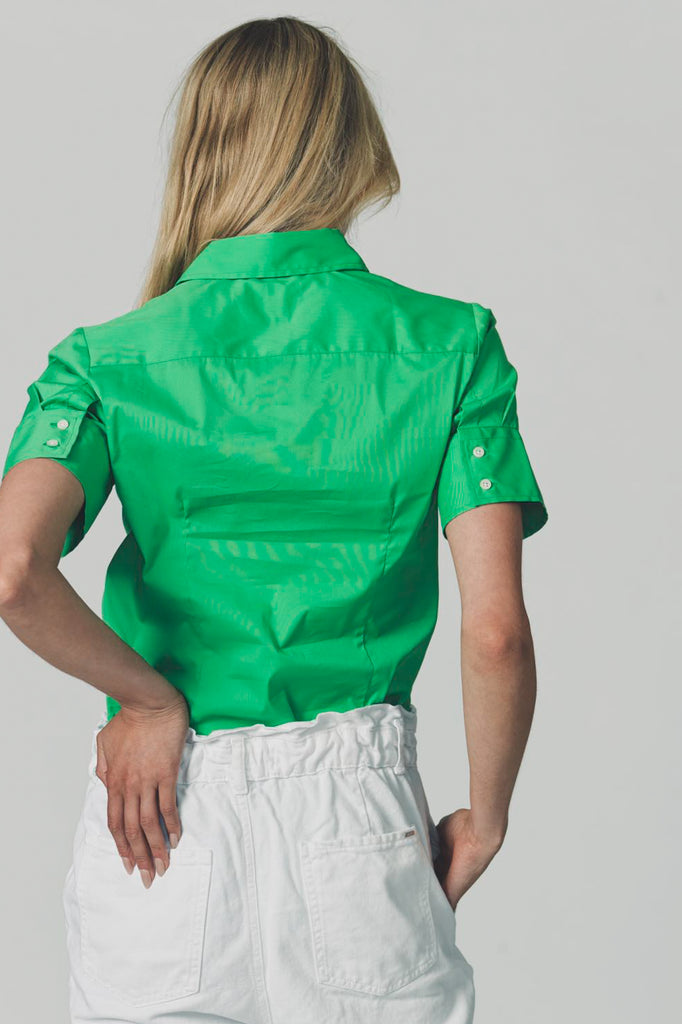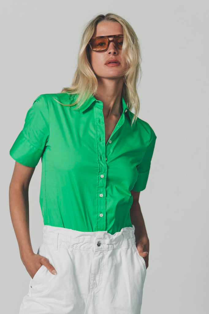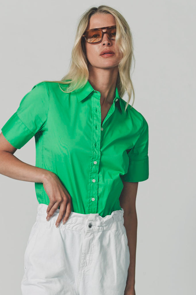 Perfect for layering, or totally chic on its own, The Short Sleeve Shirt  is super versatile. The arms are cut slim for a cool silhouette. We designed our best-selling Short Sleeve Shirt to be fitted throughout, giving you body-hugging shape yet eliminating blouse gape completely.  Our cotton stretch is sourced near and produced in our factory in Portugal by a local team of artisans.